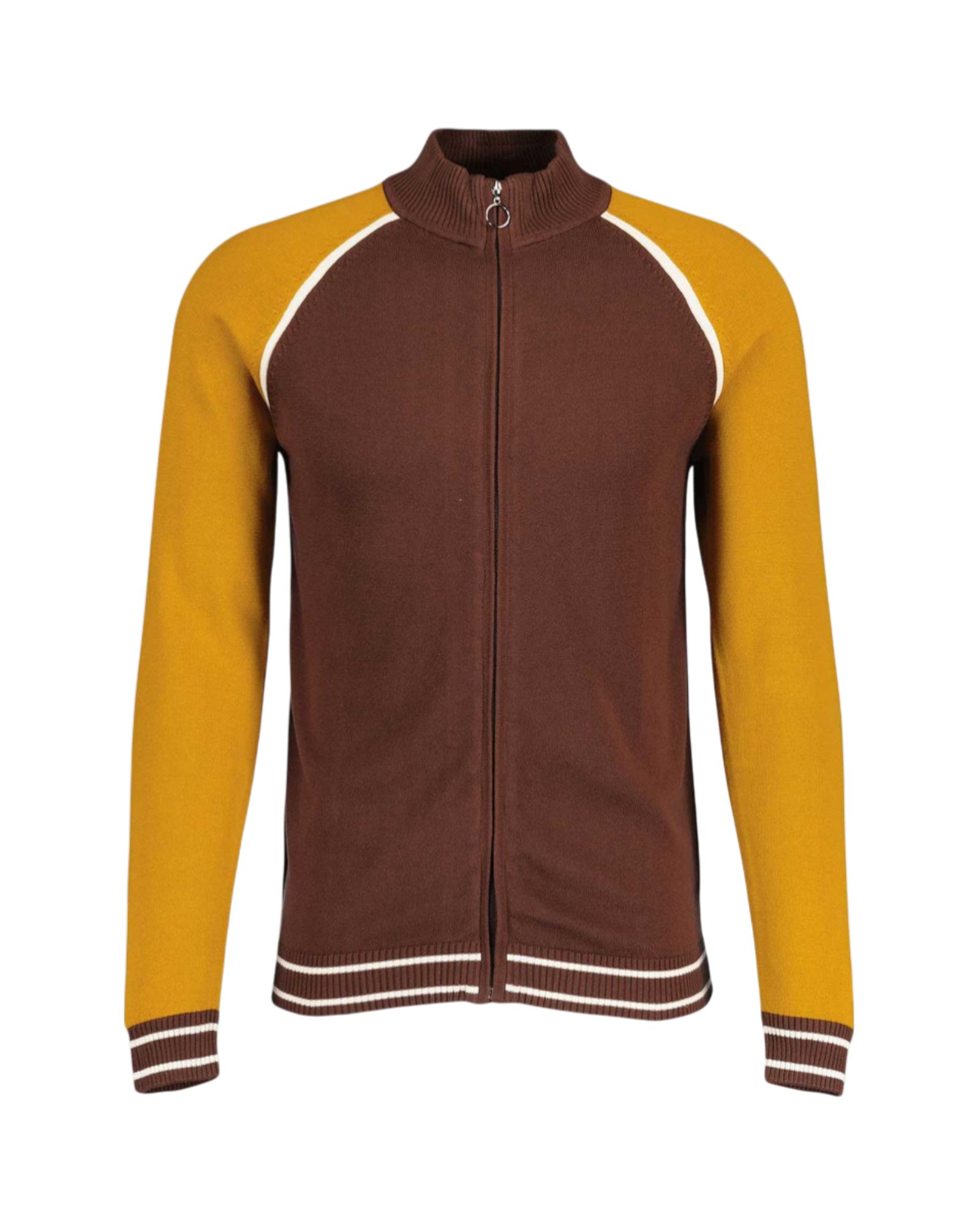 Madcap England “Fuller” is een colour block gebreid track jacket met funnel neck en raglanmouwen. Denk: old school Northern Soul & 70s sports style, maar dan strak en verzorgd. De kleurencombi “Potting Soil” met buckthorn & birch maakt ’m lekker vintage, zonder dat het oubollig wordt.
