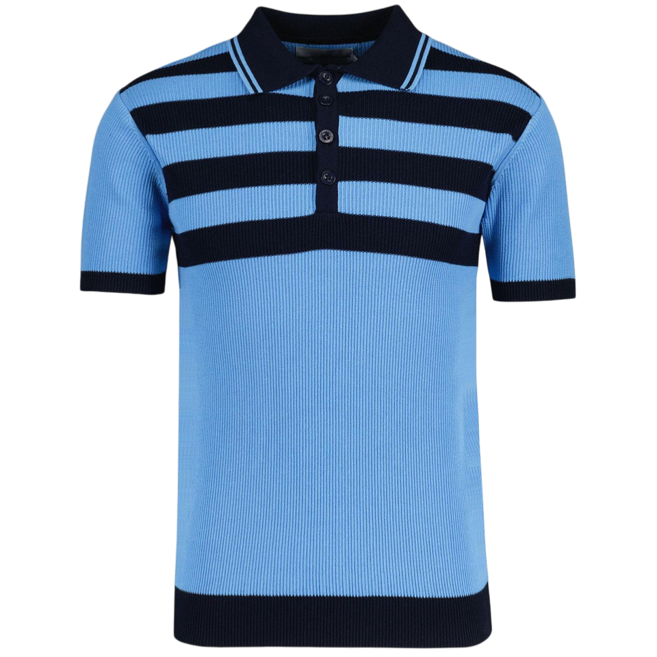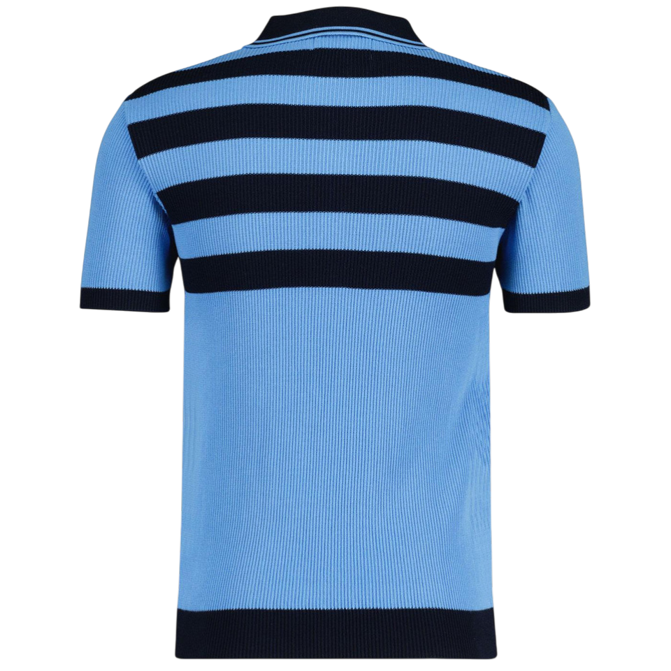 Terry Retro Mod Ribbed Knit Striped Polo in Blue/Black