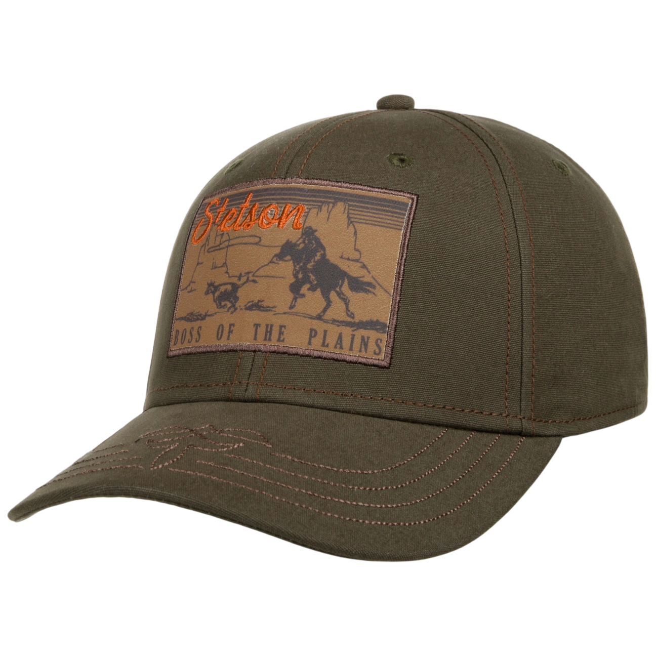Wild West pure. De Stetson Boss of the Plains Pet in olijfgroen is een klassieke 6-panel baseball cap met western flair: contraststiksels, een opvallende front patch en een stoere, tijdloze look.