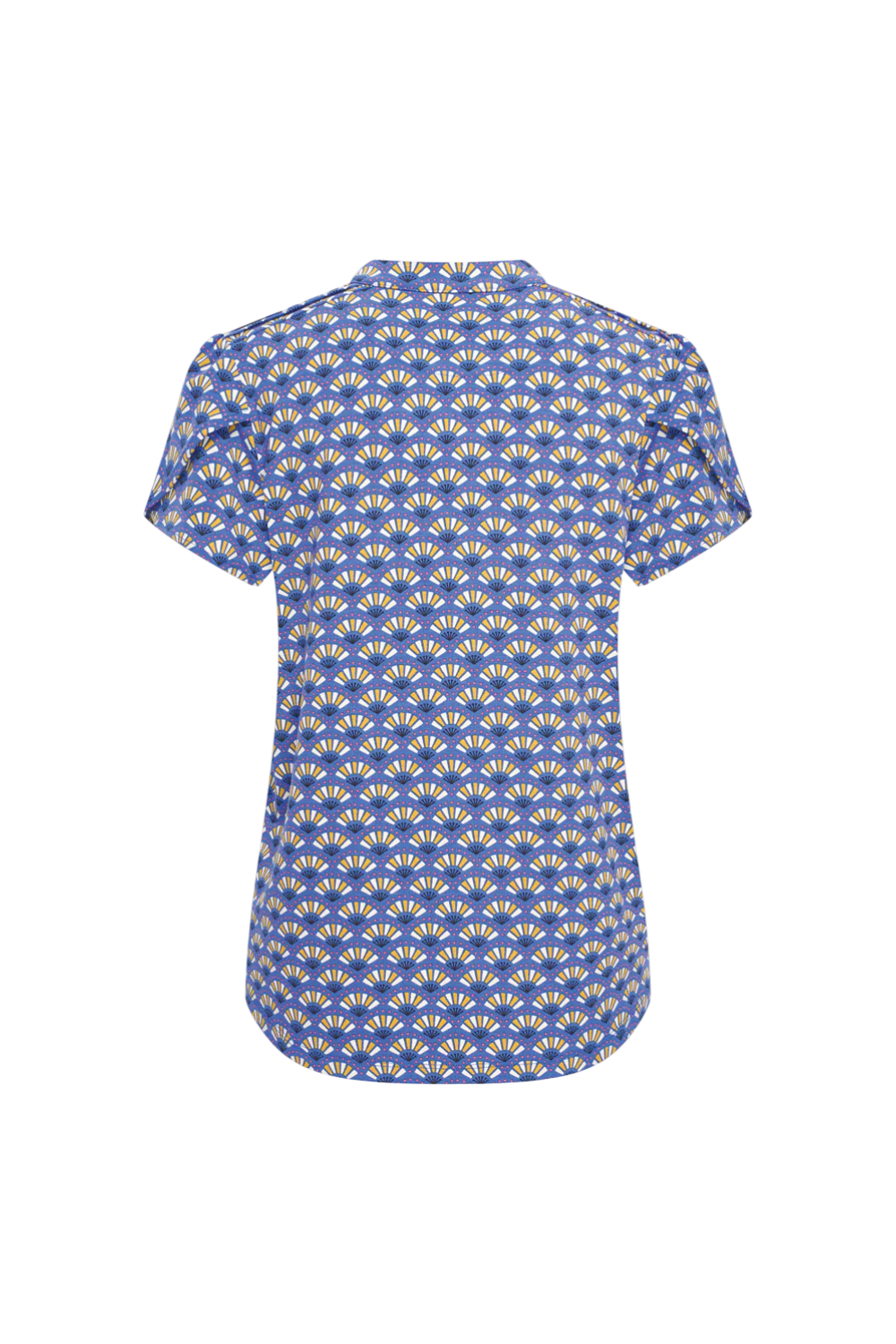 Het model heeft korte mouwen en een hoog gesloten ronde hals voor een elegante uitstraling. De knoopsluiting aan de voorzijde maakt de blouse veelzijdig: draag haar netjes gesloten of combineer speels met een top eronder.