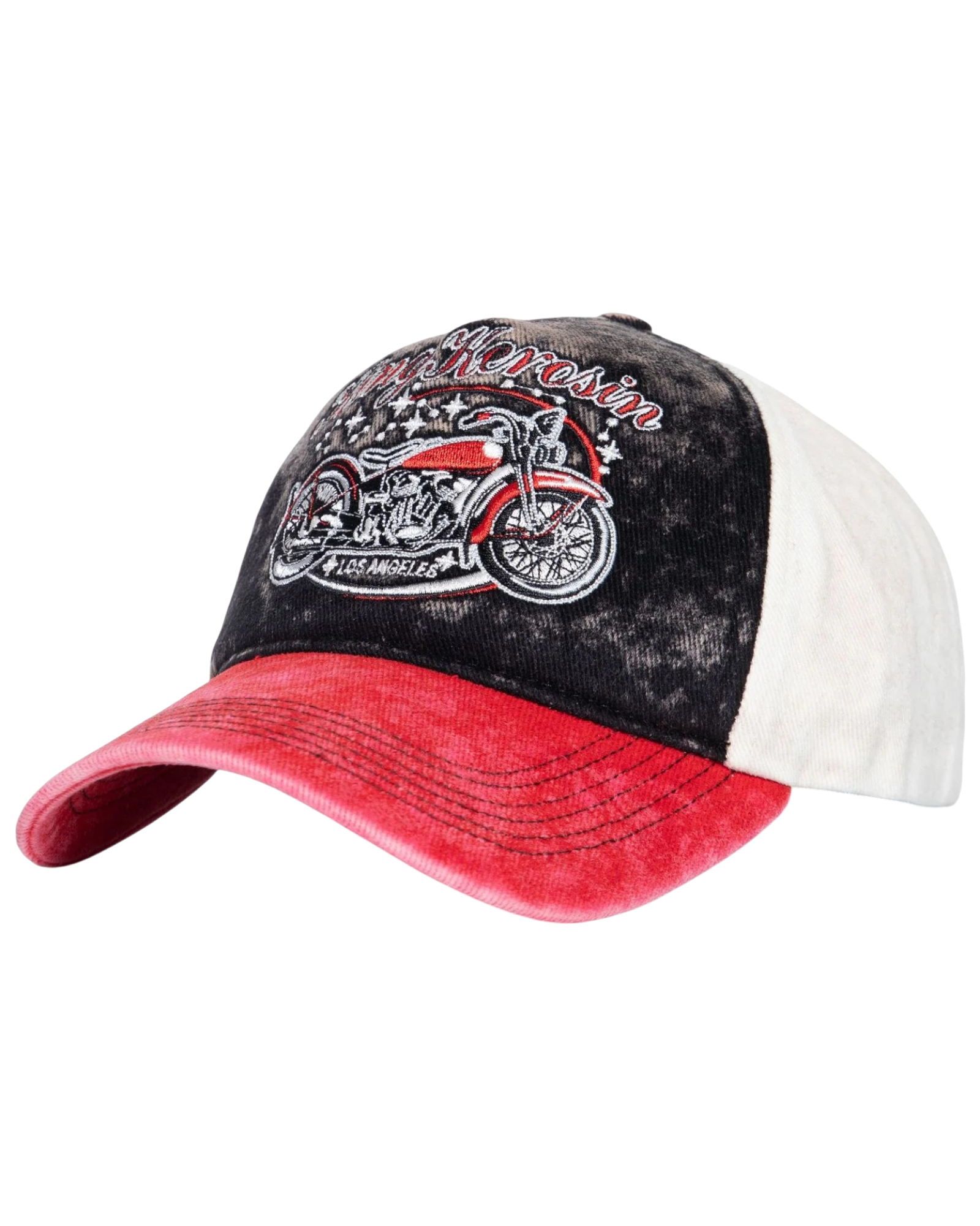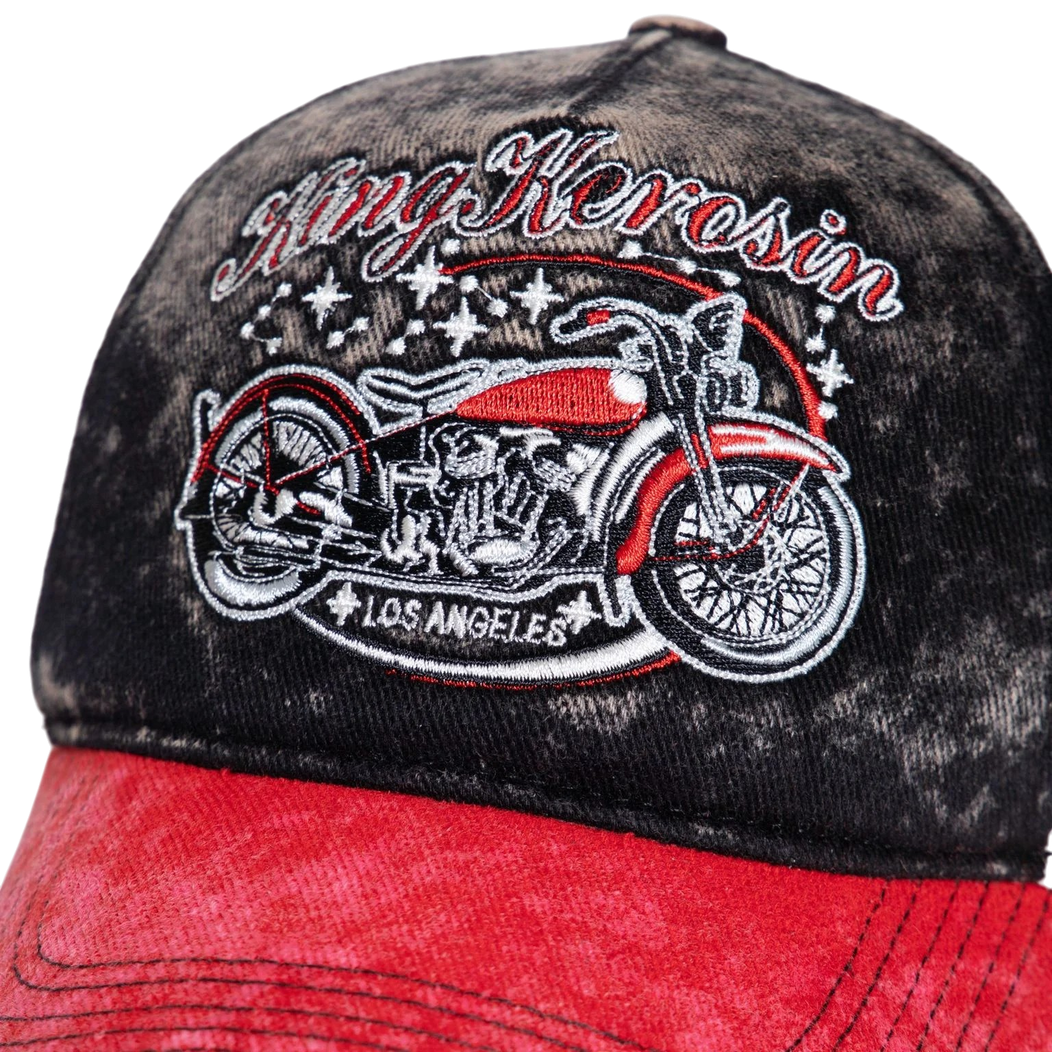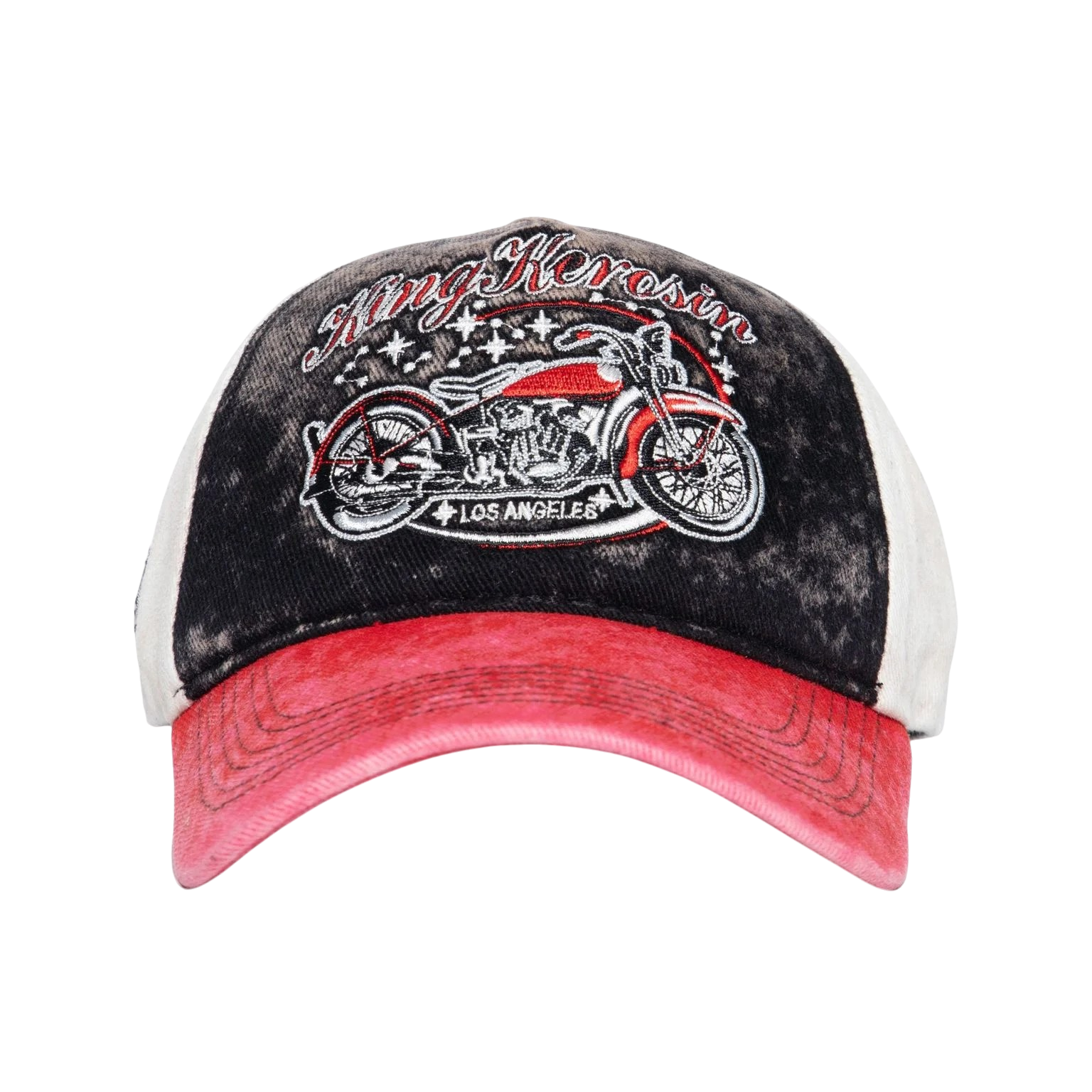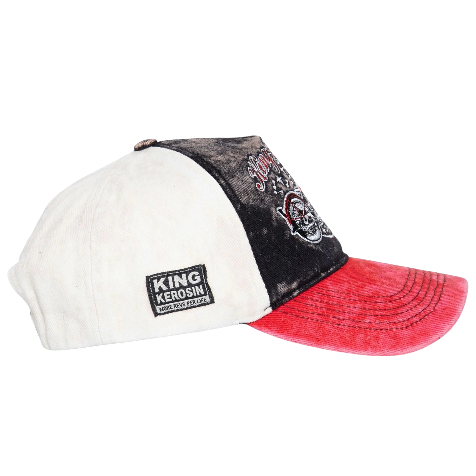 Het contrastrijke 3-kleuren design met een rode klep en een off-white achterkant geeft de cap extra karakter. De acid-wash/used look zorgt voor een authentiek vintage effect, alsof je ‘m al jaren draagt. Afgewerkt met een subtiele King Kerosin patch aan de zijkant en een verstelbare 7-gaats sluiting voor een perfecte pasvorm. Een absolute must-have voor fans van de 50’s motorcultuur en iedereen die een statement wil maken.