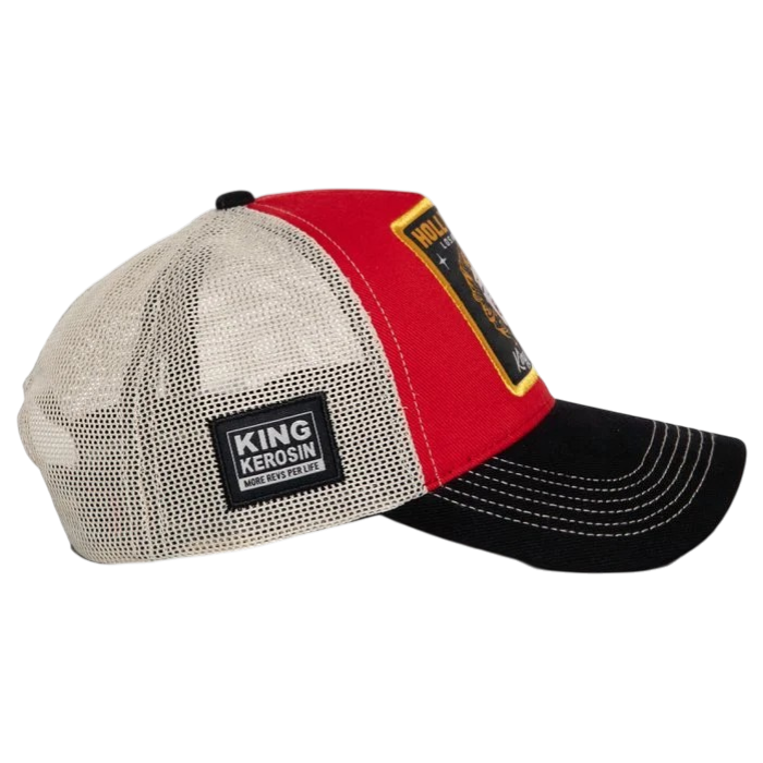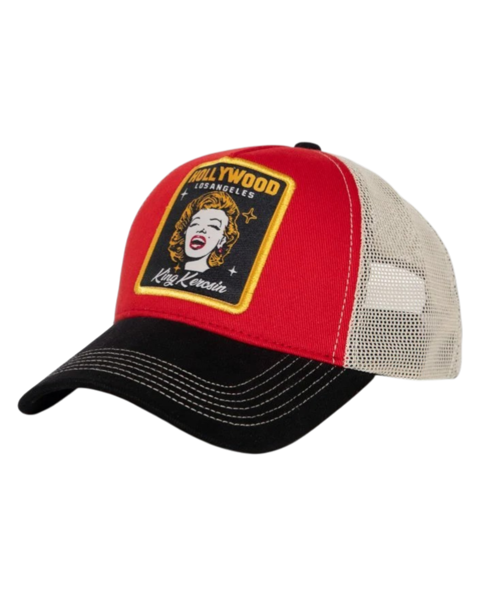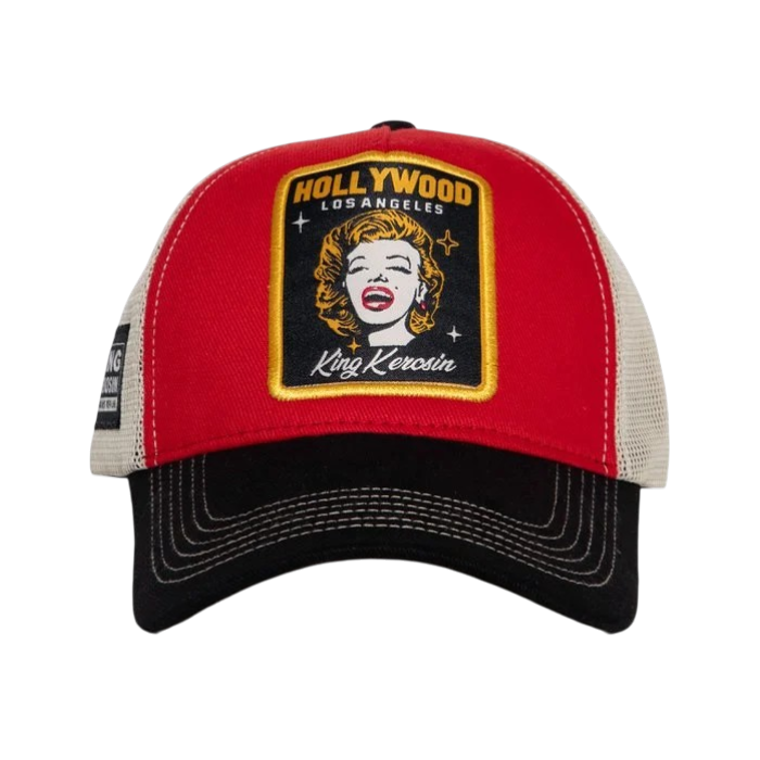 De krachtige combinatie van rood en klassiek zwart zorgt voor een opvallende look, terwijl de ademende mesh achterkant prettig draagcomfort biedt. Dankzij de verstelbare snapback-sluiting zit de cap altijd perfect, en de gebogen klep beschermt je tegen de zon. Een cap die een vleugje Hollywood-magie toevoegt aan je dagelijkse outfit.
