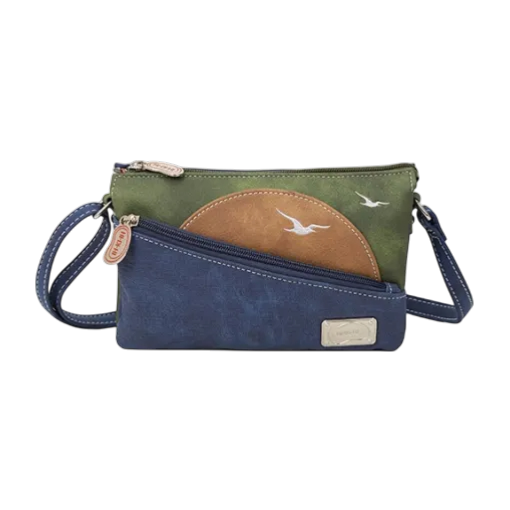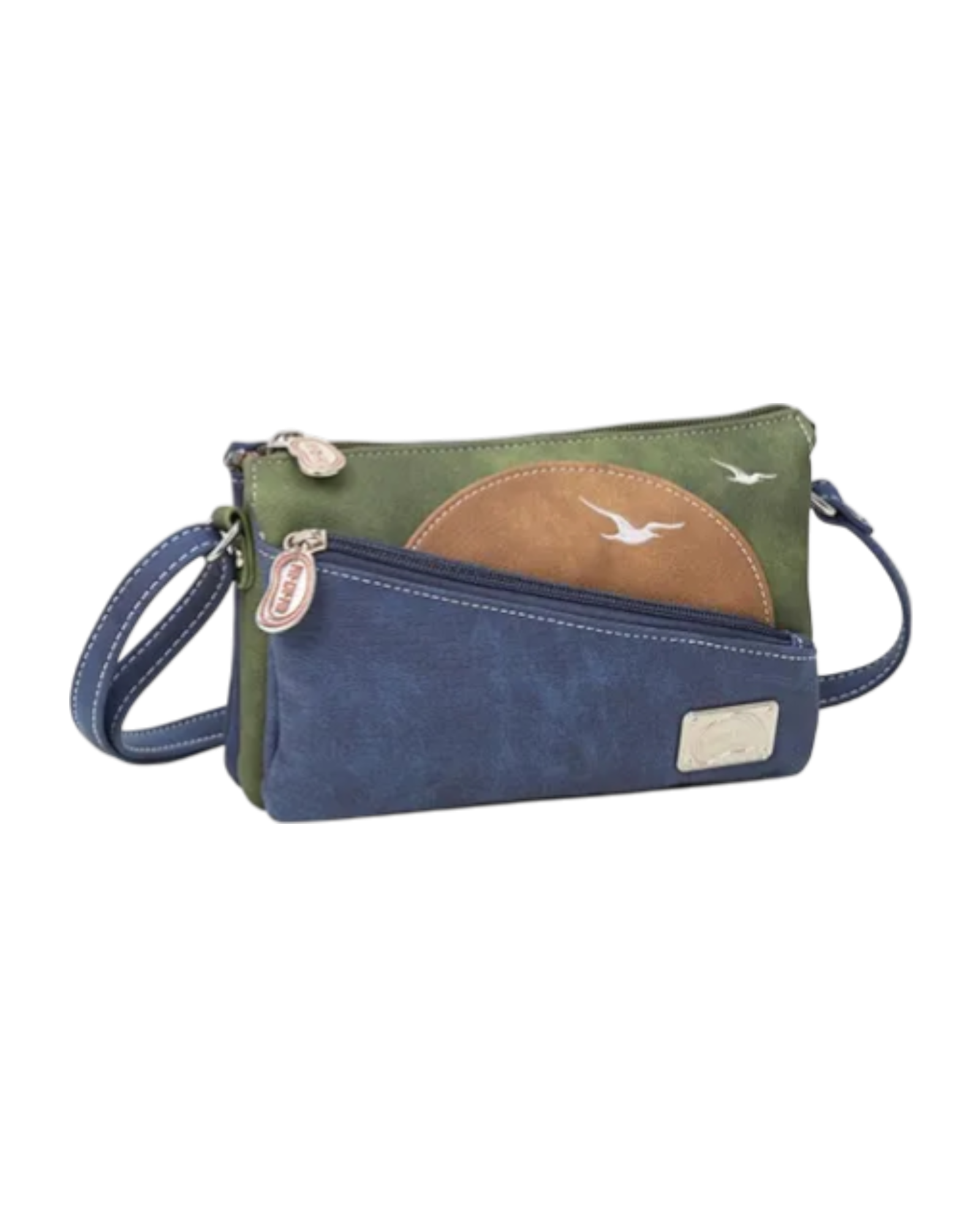 crossbody Sunrise cognac, marineblauw, donkergroen