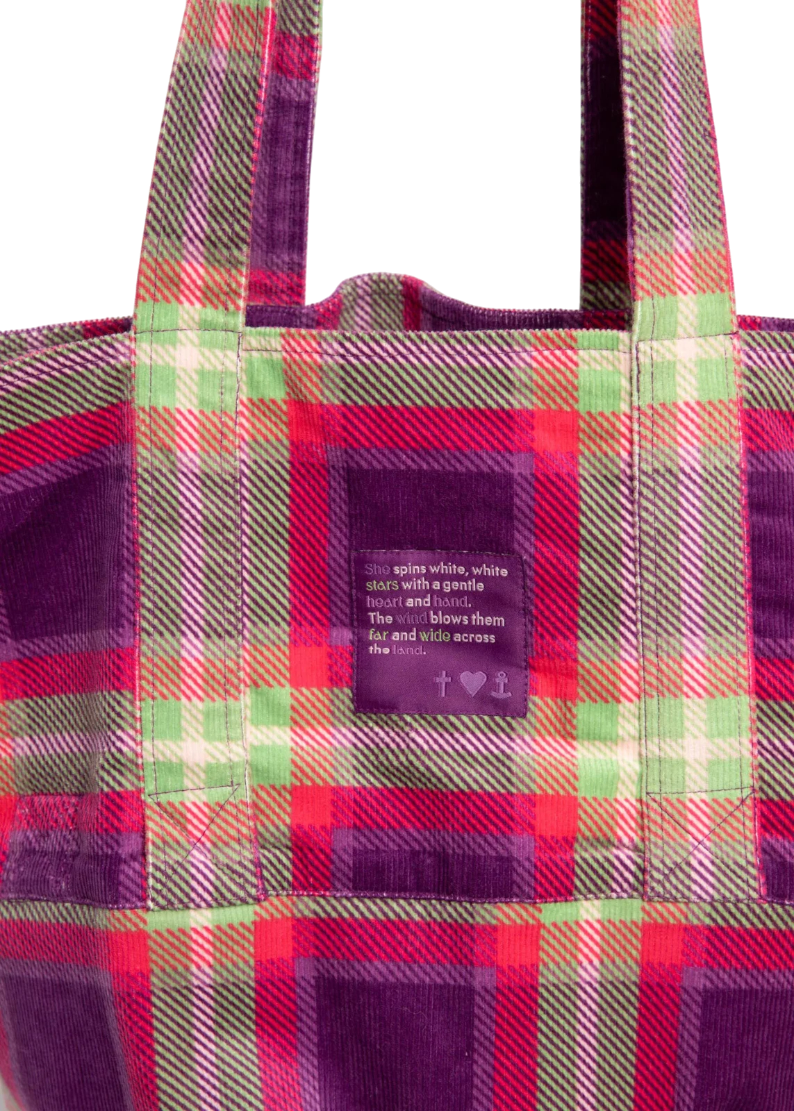 Dankzij de omkeerbare functie wissel je eenvoudig van look. De tas is uitgevoerd in babyrib en afgewerkt met een uitgebreid veelkleurig borduursel. De kenmerkende patch op de corduroyzijde geeft haar die typische Blutsgeschwister-signatuur.