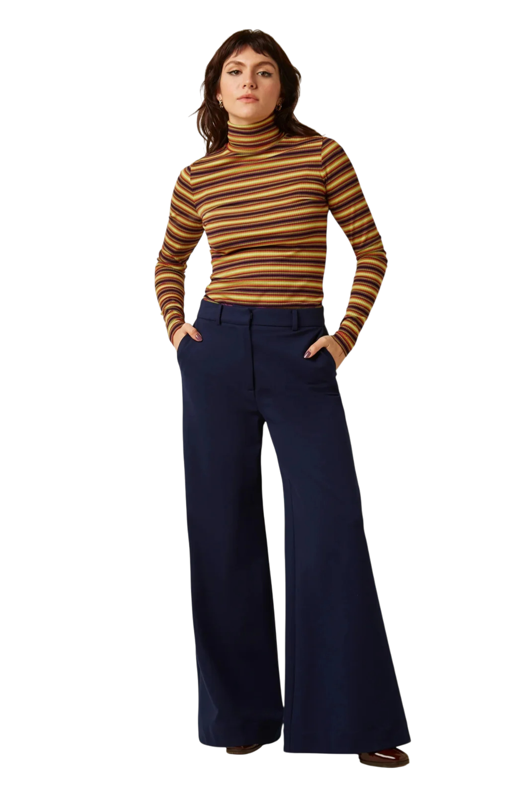 De King Louie Rollneck Top Eira Stripe in multicolor is een comfortabele coltop met een speels gestreept dessin. De zachte viscose jersey met stretch draagt heerlijk en maakt deze top perfect voor dagelijks gebruik, met een duidelijke knipoog naar de seventies.