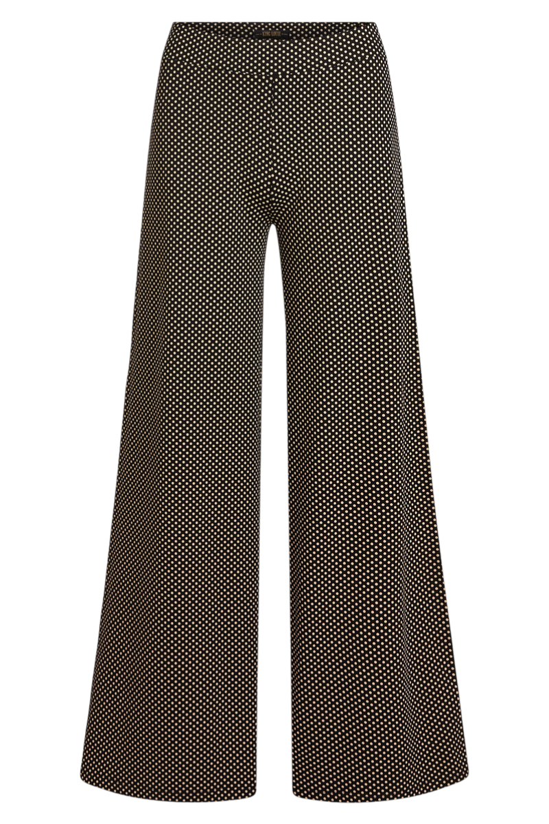 De King Louie Border Palazzo Pants Piper is een comfortabele palazzo broek met een elegante, zwierige fit. De gladde jersey traveller kwaliteit en de print geven deze broek een tijdloze uitstraling, terwijl de hoge taille en brede elastische tailleband zorgen voor optimaal draagcomfort.