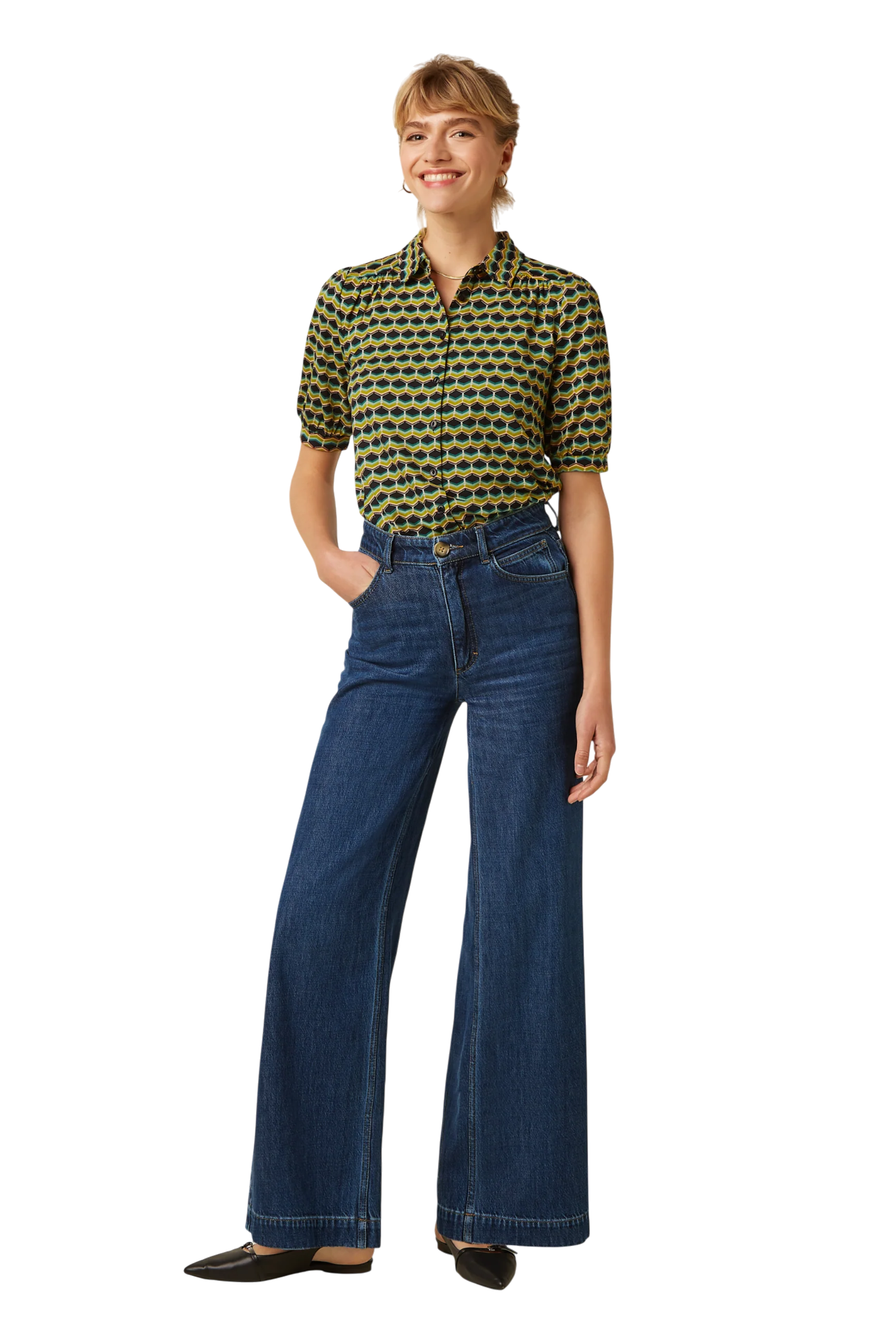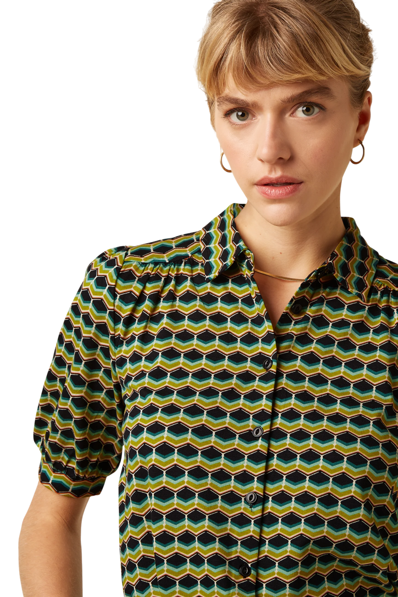 De Carina Blouse Drift van King Louie is een vrouwelijke blouse met een tijdloze retro uitstraling.