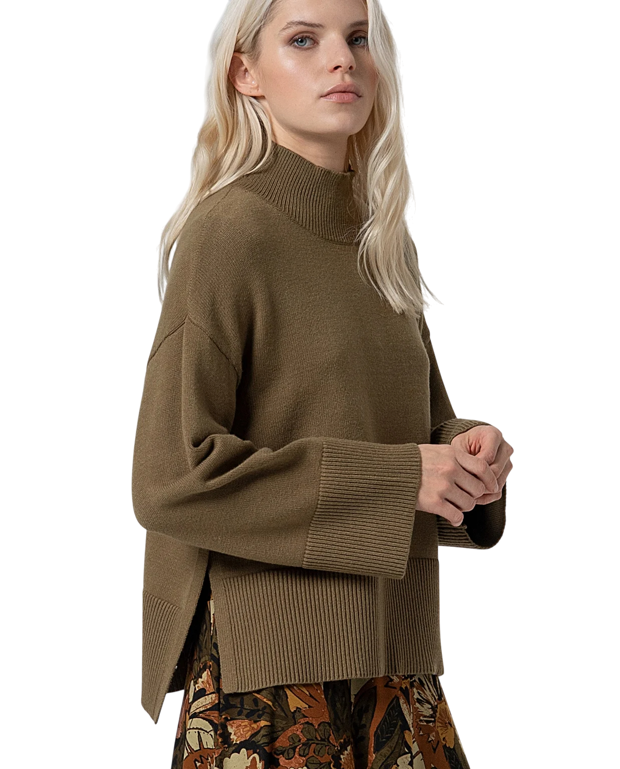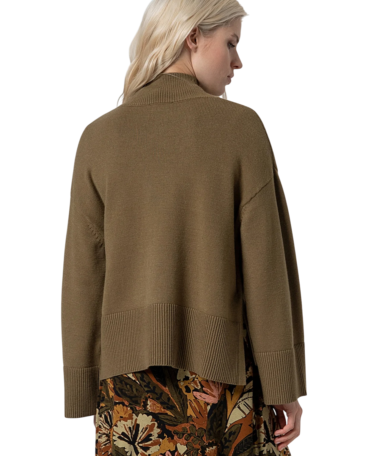 De Surkana sweater “Dolores” is een basic met karakter. Deze gebreide trui is superzacht en lekker elastisch, met een stijlvolle perkins kraag en lange, uitlopende mouwen. Perfect voor elke dag, met een relaxed maar flatterend silhouet.
