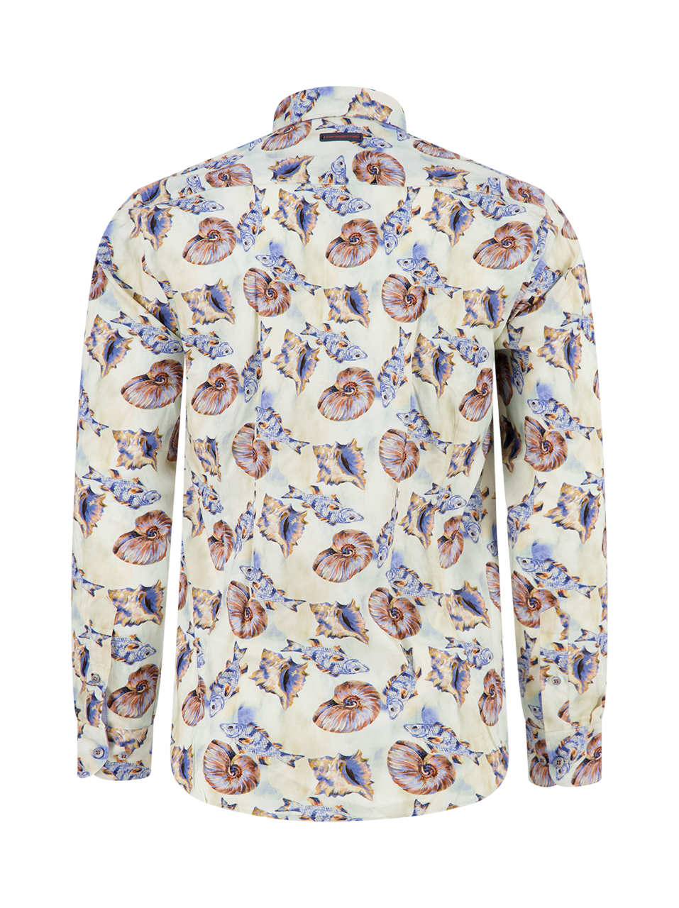 De kunstzinnige all-over print met aquatische invloeden geeft dit shirt een speelse,