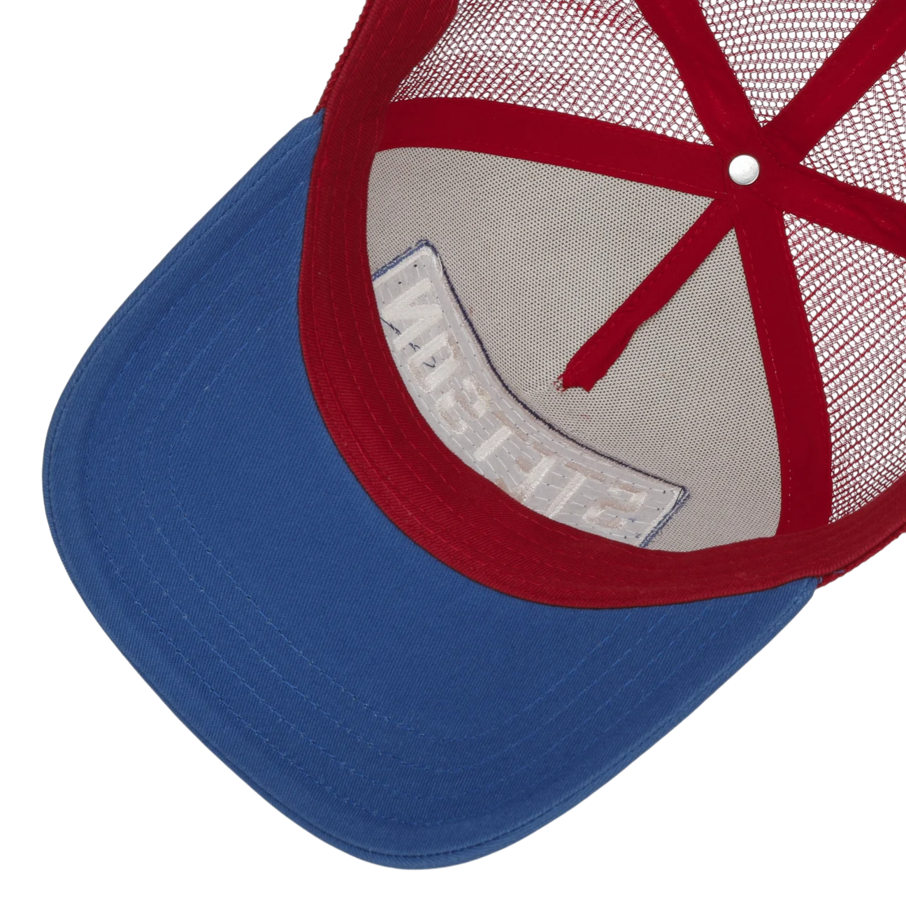 Stoere trucker cap met een typische hoge kopvorm en een frisse, opvallende look. Door de mesh zijkanten/achterkant draagt ‘ie lekker luchtig — perfect voor zonnige dagen.