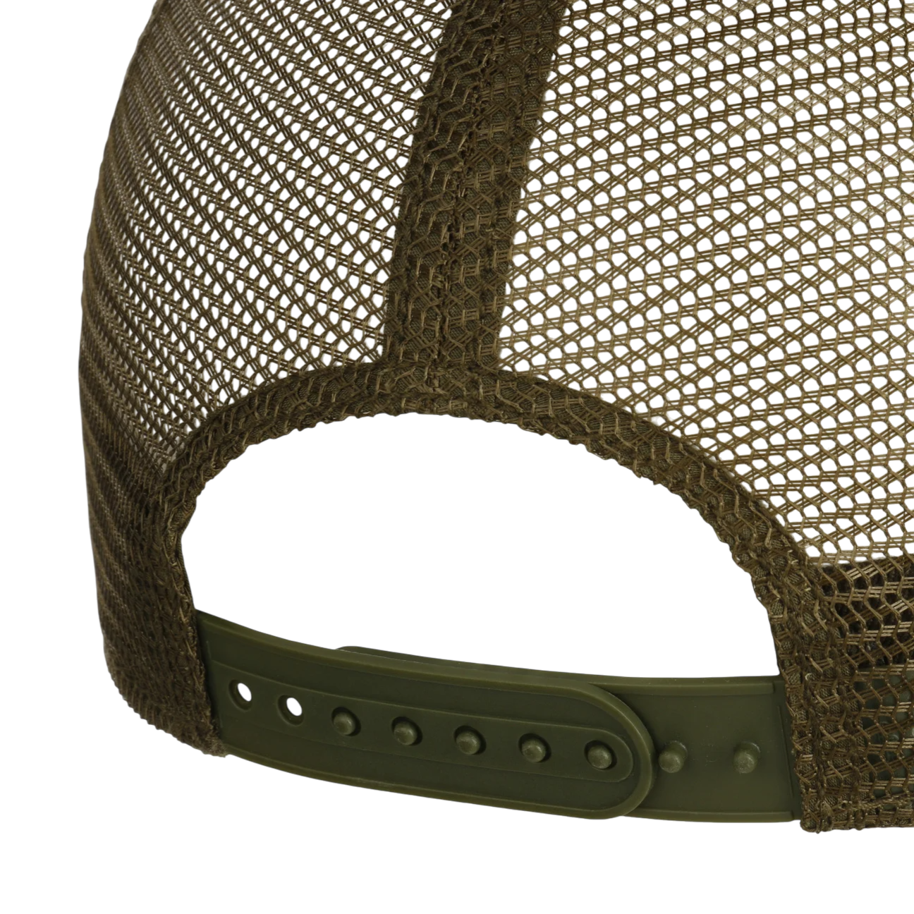 Stoere trucker cap met een typische hoge kopvorm en een frisse, opvallende look. Door de mesh zijkanten/achterkant draagt ‘ie lekker luchtig — perfect voor zonnige dagen.