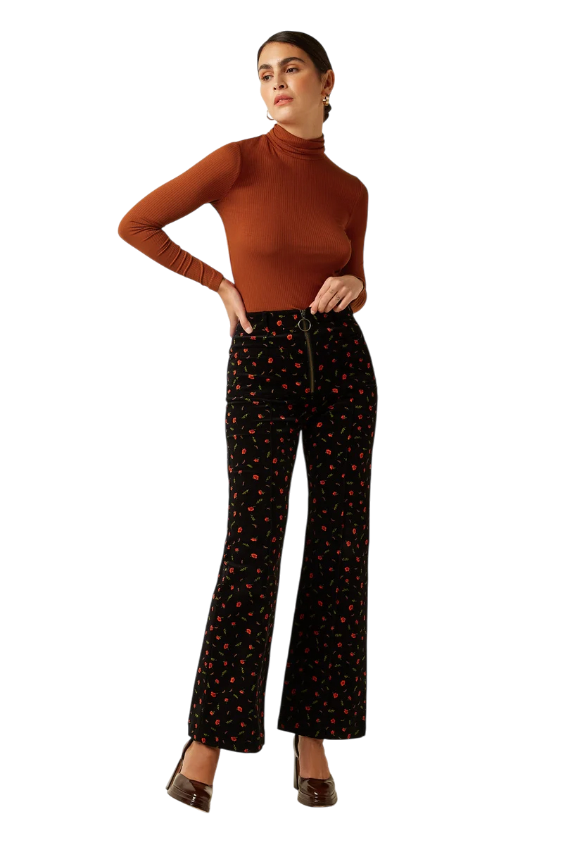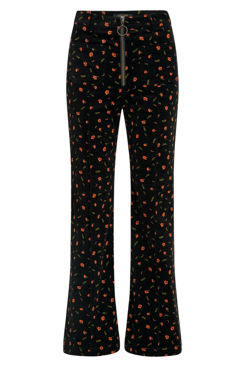 King Louie Ida Front Zip Pants Nival – Zwart met print
