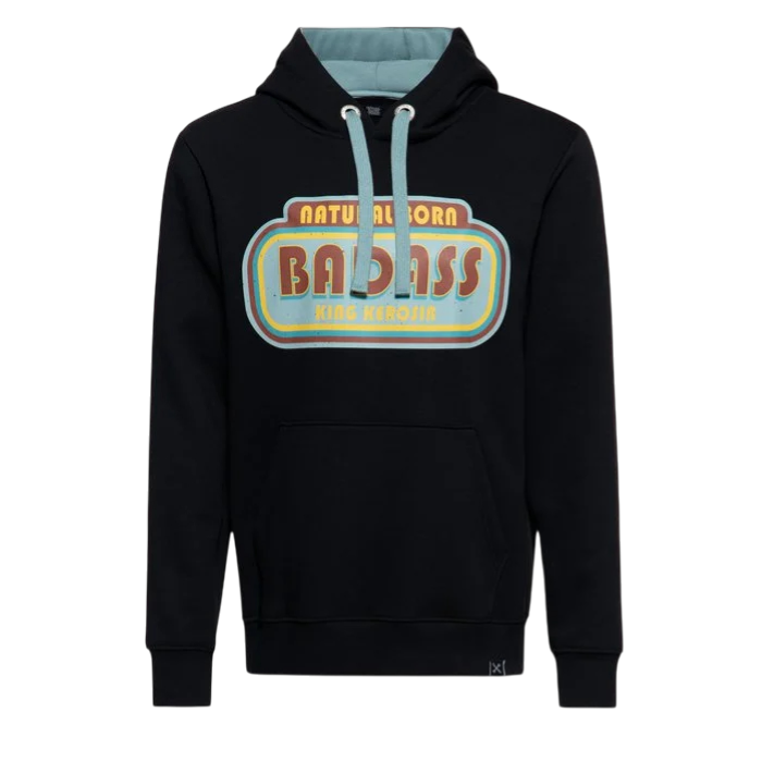 King Kerosin – Hoodie "Natural Born Bad Ass" in zwart. Een stoere hoodie met opvallende print op zowel de voor- als achterkant. Comfort en karakter in één.