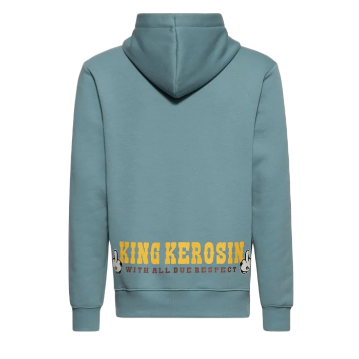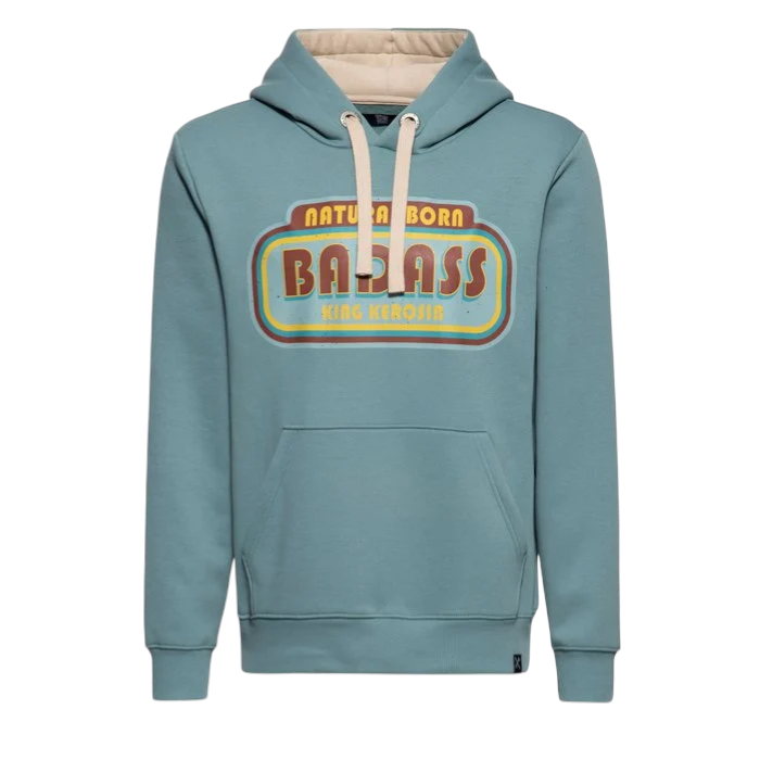 King Kerosin – Hoodie "Natural Born Bad Ass" in grijsblauw. Een stoere hoodie met opvallende print op zowel de voor- als achterkant. Comfort en karakter in één.