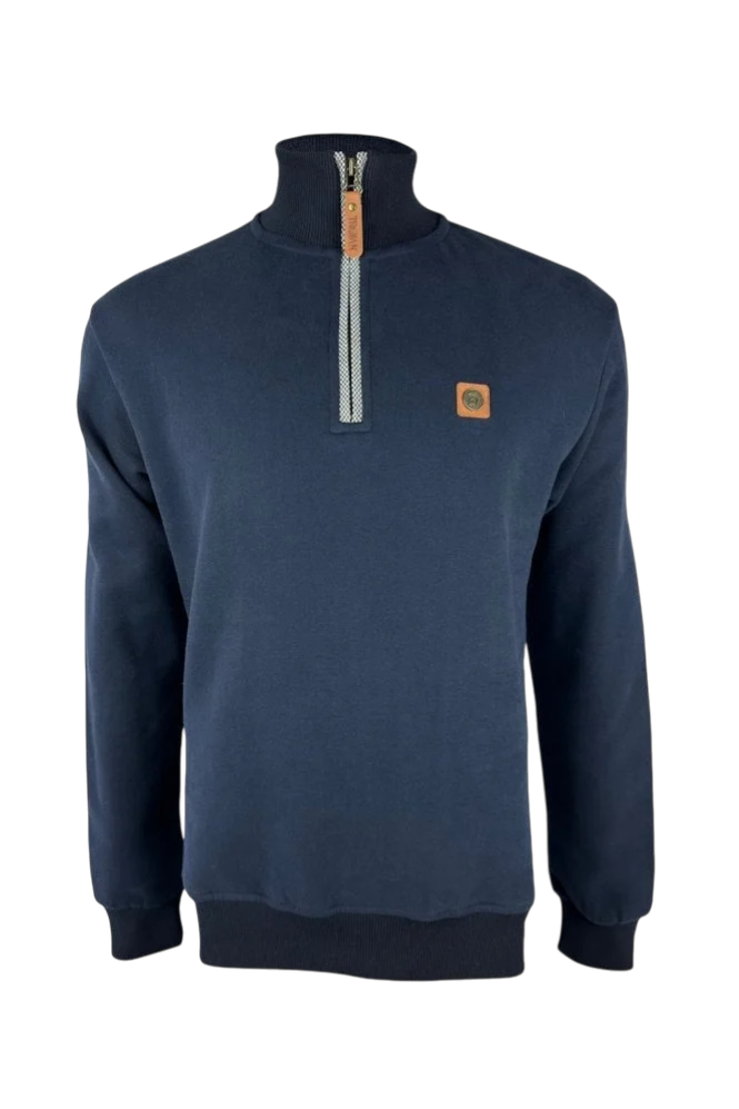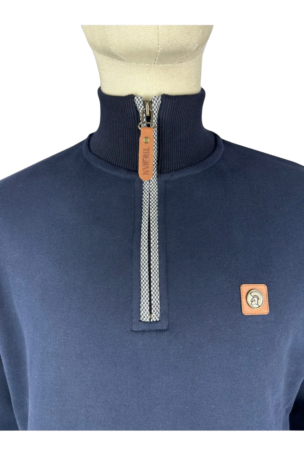 Trojan – Quarter Zip Jacquard Trim Sweat in navy. Een superzachte sweatshirt van 100% katoen met verfijnde details en een sportieve uitstraling.