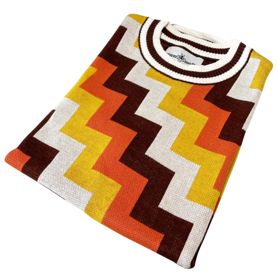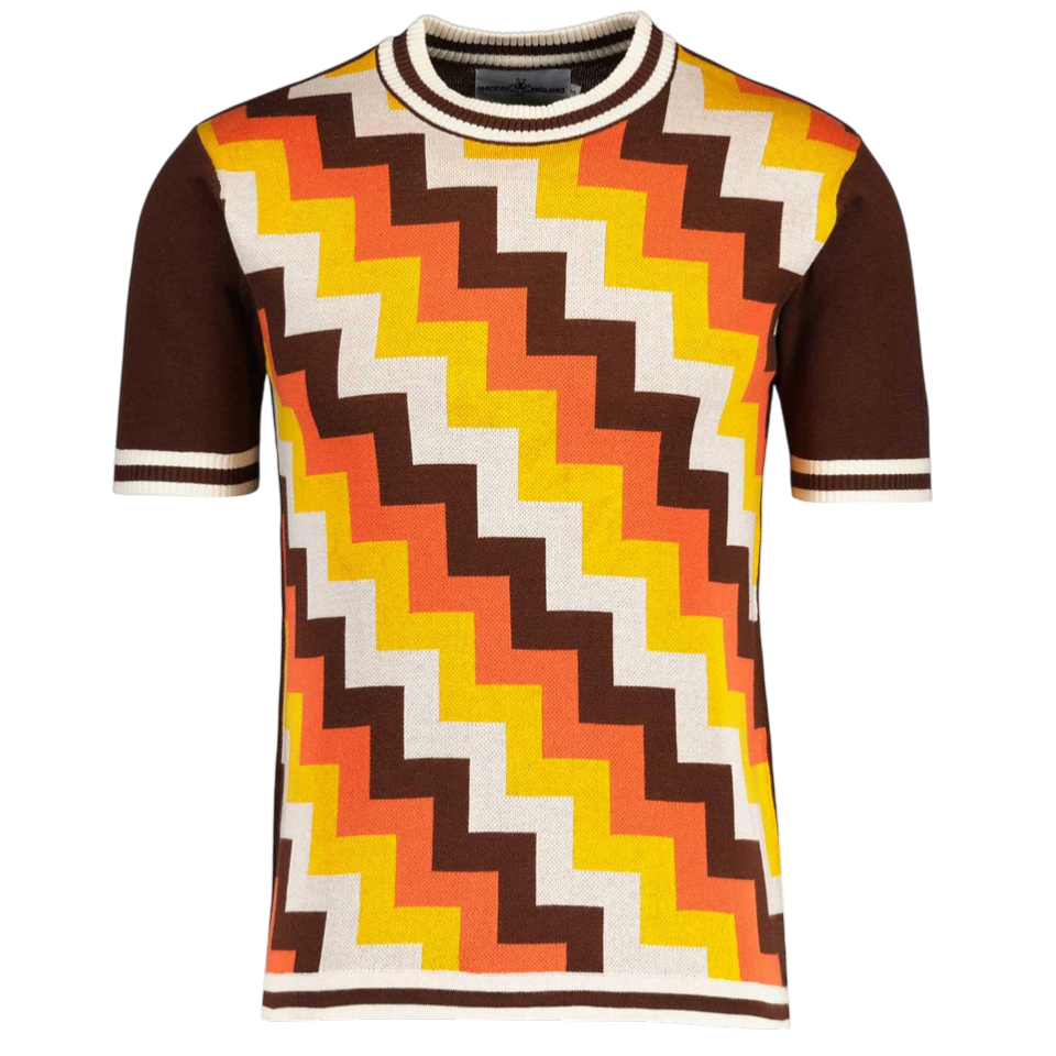 Rainmaker Retro 70s Step Jacquard Knit Tee in Potting Soil