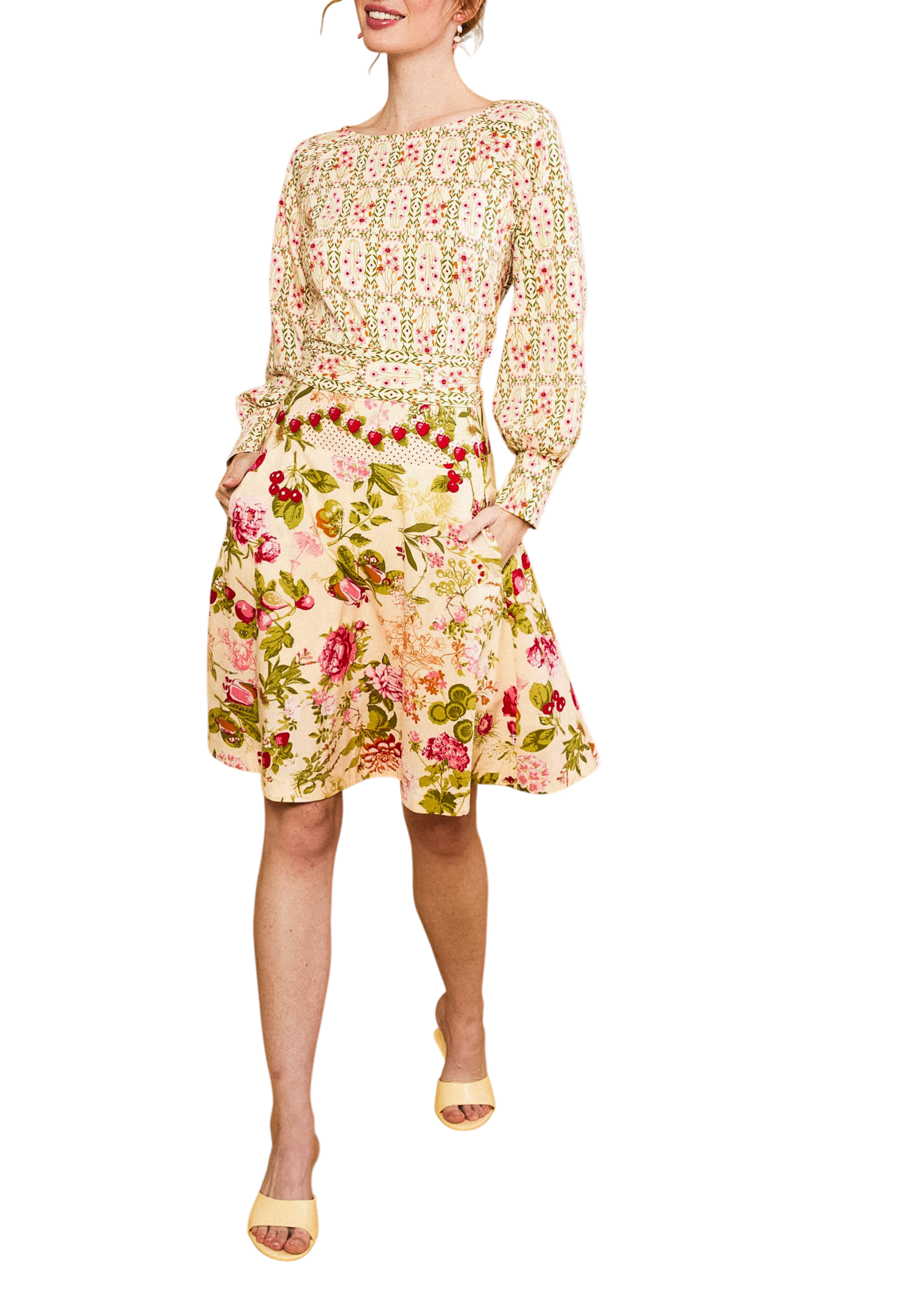 Een vrouwelijke, knielange rok van easy-care, biologisch geweven katoen met een klein beetje stretch. Een echte allrounder: netjes genoeg voor een feestje, relaxed genoeg voor elke dag.