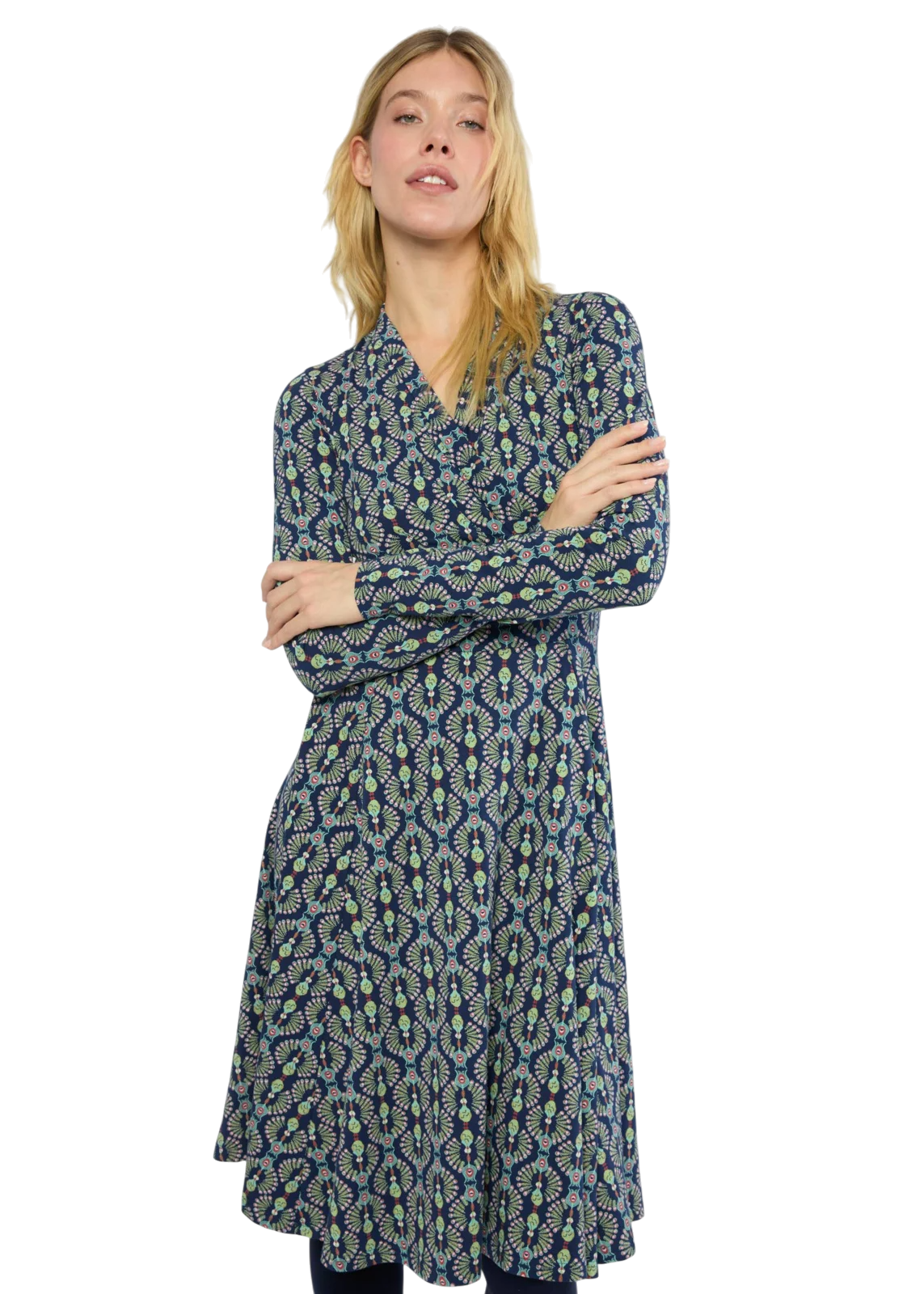 De Feather Duster print geeft deze jurk een speelse maar elegante uitstraling. Perfect voor elke dag, maar ook heel geschikt voor een etentje of feestje — combineer met laarsjes, hakken of sneakers.