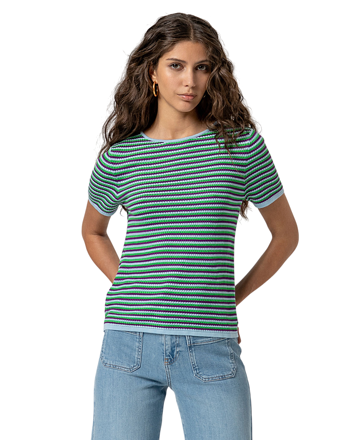 STRIPED SHORT SLEEVED SWEATER BLUE